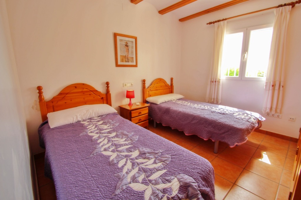 Estrelizia est une charmante maison de vacances sur 2 étages, idéale pour des vacances en famille ! Son agencement est parfait avec une entrée sur le salon qui permet d’admirer la piscine et le lever du soleil. Profitez de la grande table de salle à manger pour vos petits-déjeuners en famille ! La cuisine est entièrement équipée pour votre confort. Une chambre à lit superposé et une autre à lits jumeaux ainsi qu’une salle de douche/WC complètent le rez-de- chaussée. A l’étage, vous trouverez une chambre à lit double et une chambre à lits jumeaux se partageant une salle de bain et un WC. Toutes les chambres sont climatisées. Un grand balcon vous permettra d’admirer la vue panoramique sur la mer et Calpe. Tout le monde pourra se réunir autour de la piscine privée et ses chaises longues !