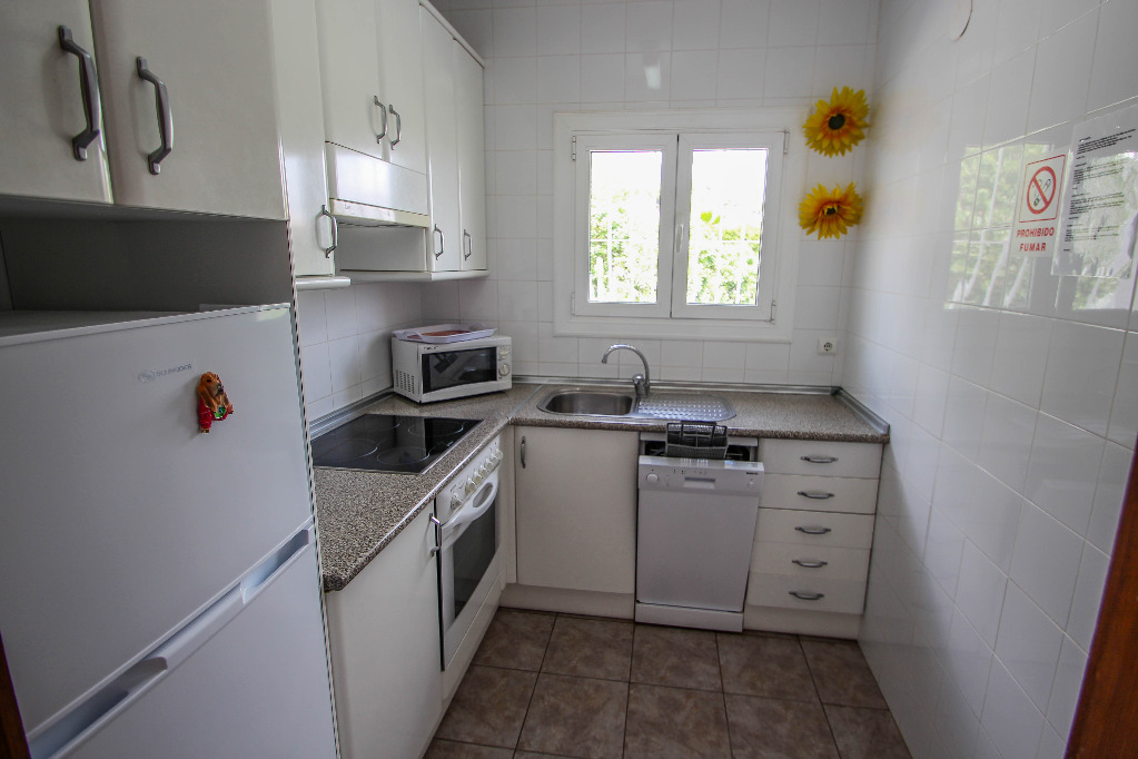 1 cuisine toute équipée (four, lave-vaisselle et machine à laver)